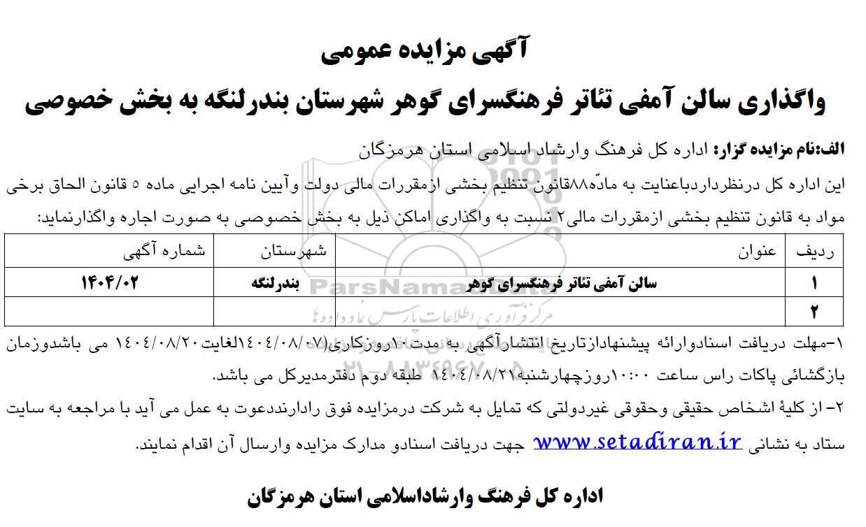 الف: نام مزایده گزار: اداره کل فرهنگ و ارشاد اسلامی استان هرمزگان