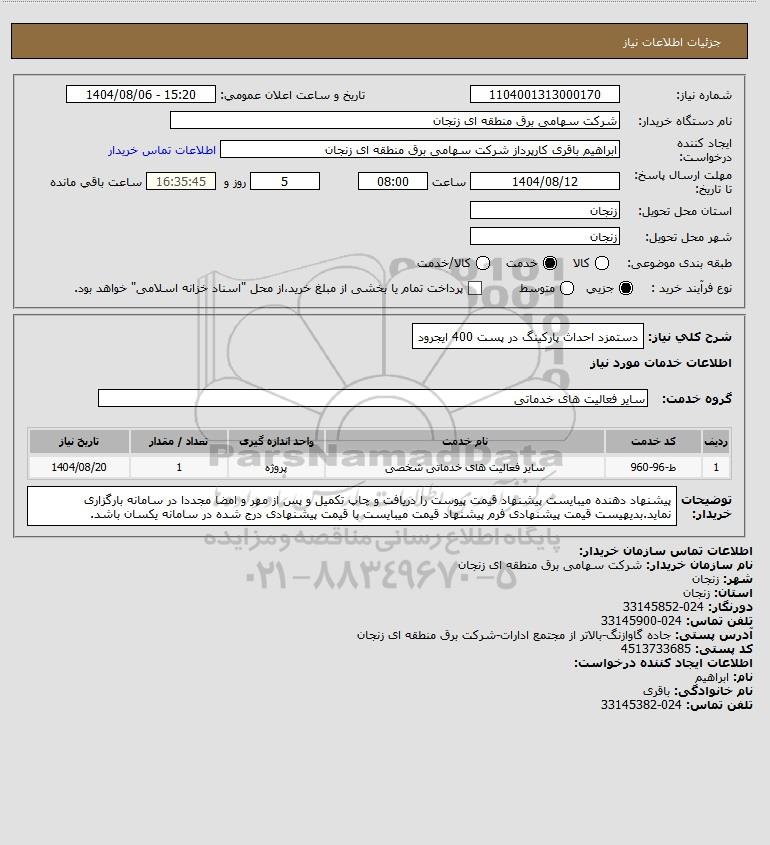نام دستگاه خریدار:شرکت سهامی برق منطقه ای زنجان