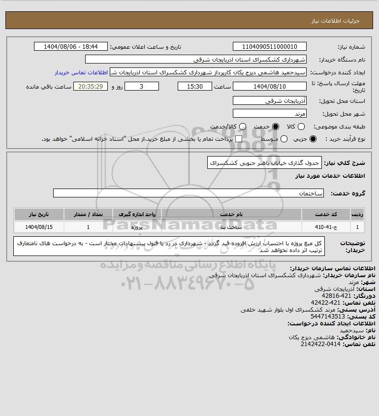 شرح کلی نیاز: جدول گذاری خیابان باهنر جنوبی کشکسرای