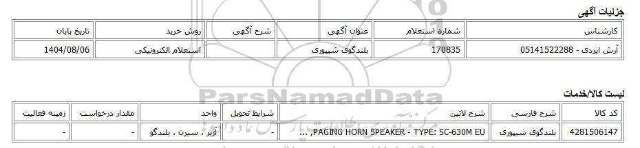 آرش ایزدی - 05141522288170835بلندگوی شیپوریاستعلام الکترونیکی1404/08/06