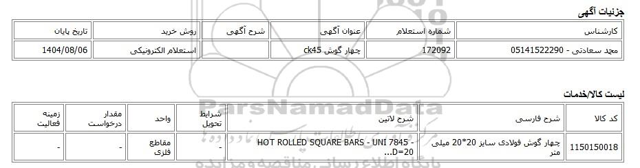 محمد سعادتی - 05141522290172092چهار گوش ck45استعلام الکترونیکی1404/08/06