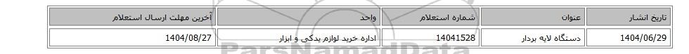 1404/06/29دستگاه لایه بردار14041528اداره خرید لوازم یدکی و ابزار1404/08/27