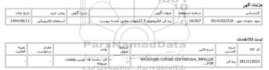 محمد جاودان مهر - 05141522318161927پره فن الکتروموتور 7.5کیلووات مطبق نقشه پیوستاستعلام الکترونیکی1404/08/12