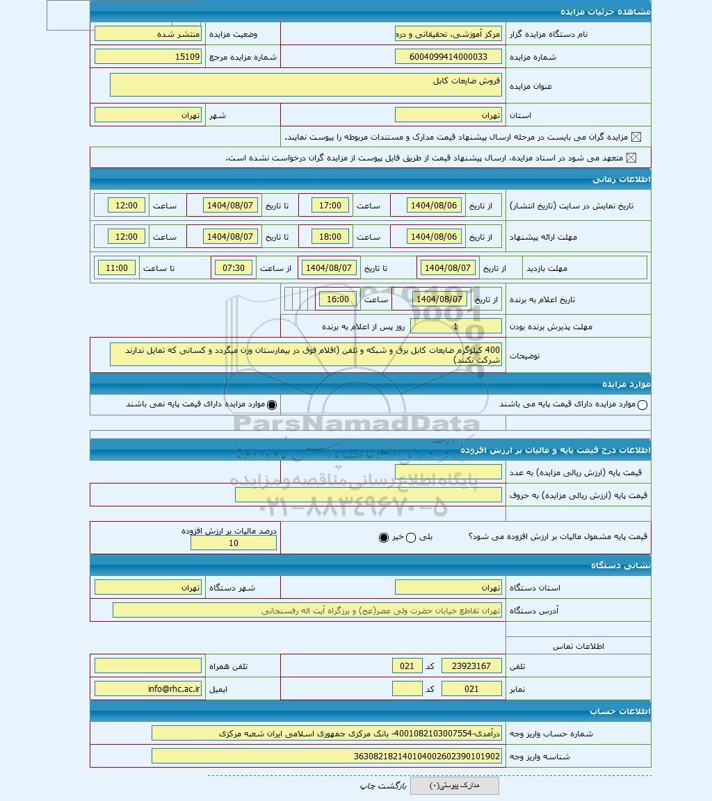 | عنوان مزایده | فروش ضایعات کابل | |||