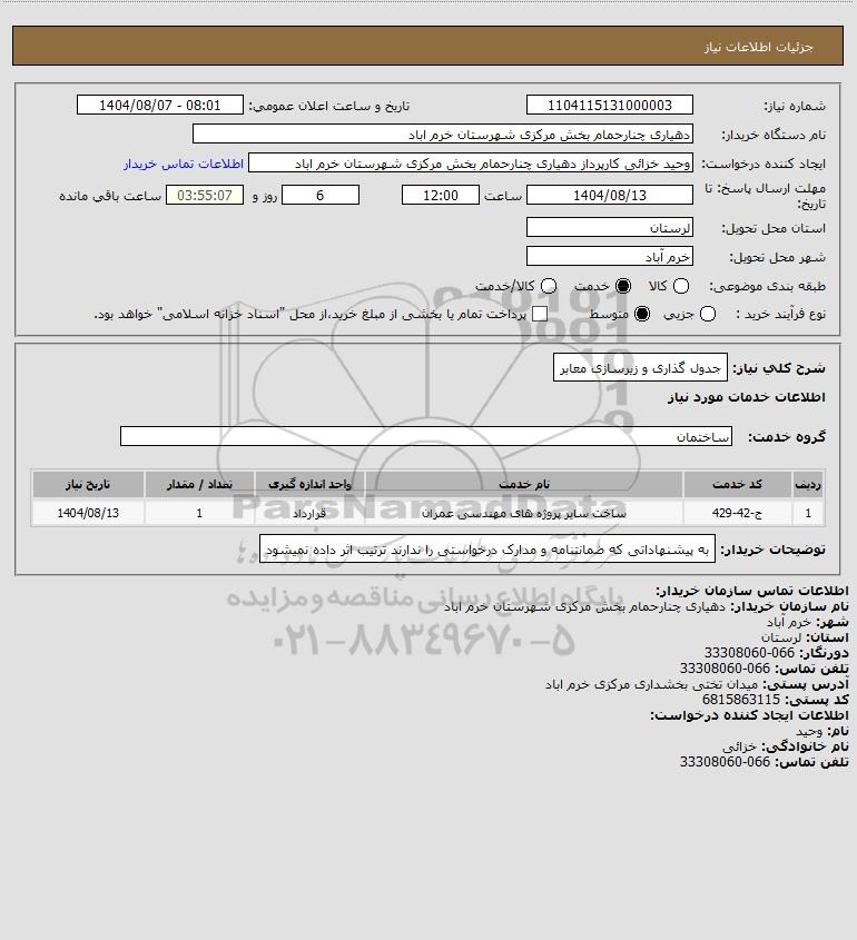 شرح کلی نیاز: جدول گذاری و زیرسازی معابر