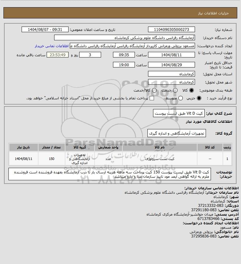 شرح کلی نیاز: کیت Vit D طبق لیست پیوست