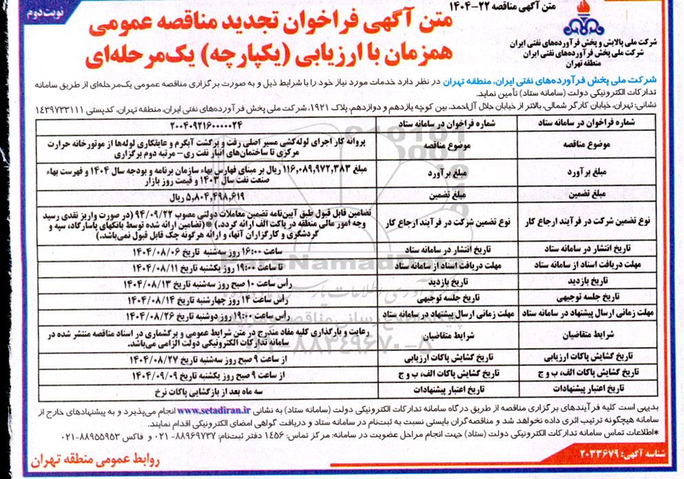 نوبت دوم - متن آگهی مناقصه 22 - 1404