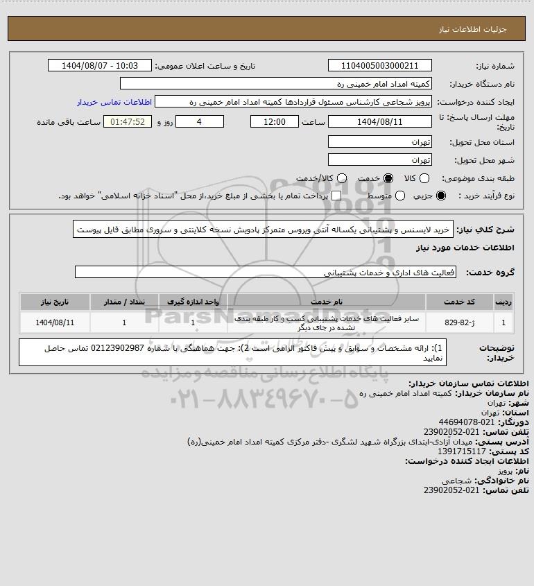 شرح کلی نیاز: خرید لایسنس و پشتیبانی یکساله آنتی ویروس متمرکز پادویش نسخه کلاینتی و سروری مطابق فایل پیوست