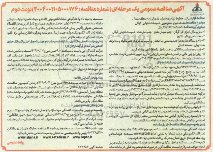 مناقصه احداث دیوار ضلع غربی تاسیسات انتهایی...- نوبت دوم, مناقصه احداث دیوار ضلع غربی تاسیسات انتهایی...- نوبت دوم