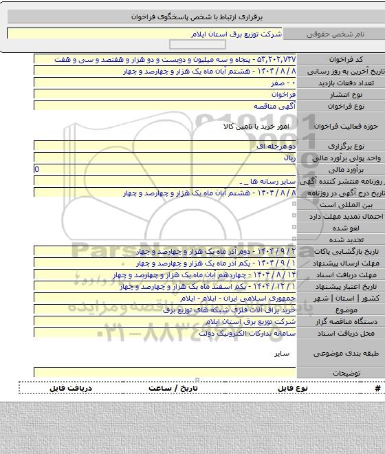 برای شرکت در مناقصه حتما از تصویر آگهی در سایت پارس نماد داده ها استفاده نمایید