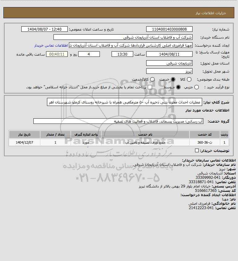 نام دستگاه خریدار:شرکت آب و فاضلاب استان آذربایجان شرقی