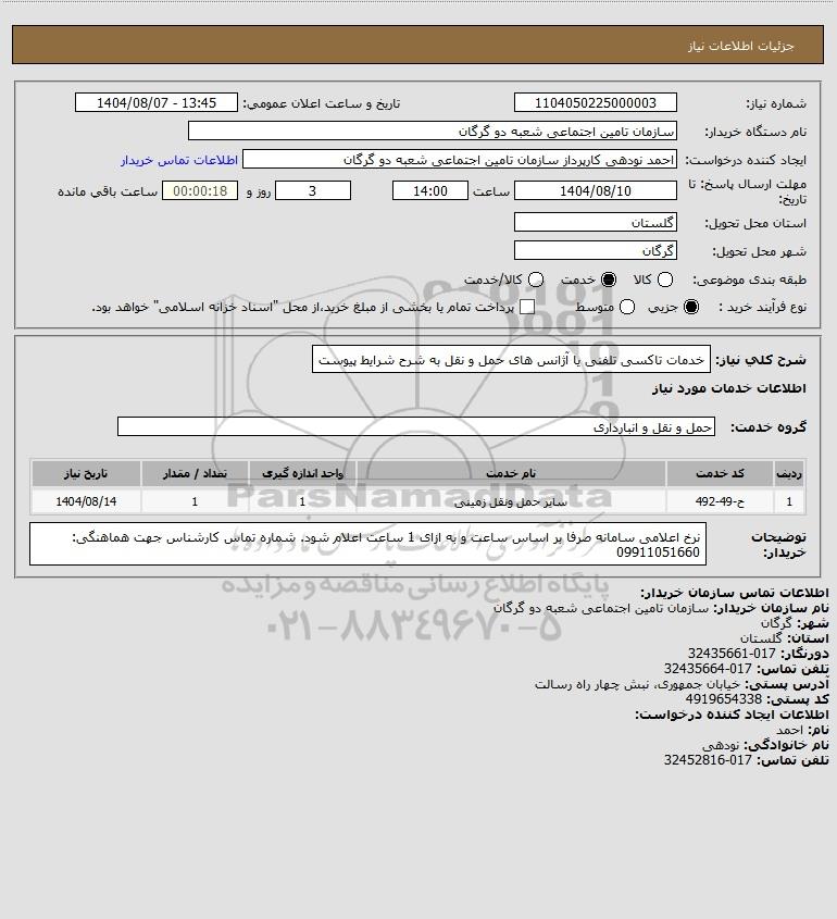 نام سازمان خریدار: سازمان تامین اجتماعی شعبه دو گرگان