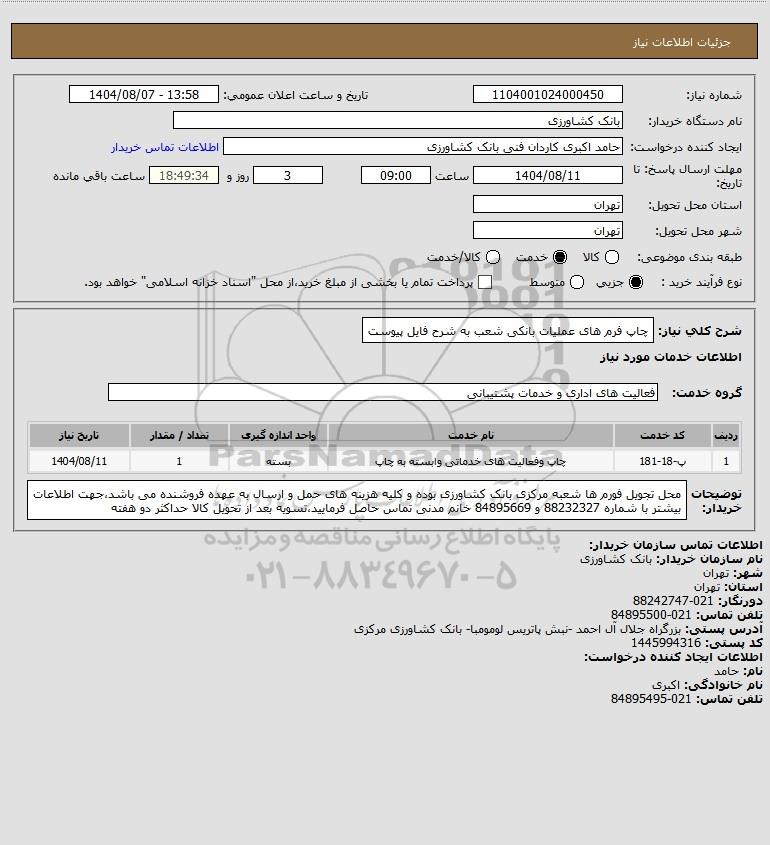 شرح کلی نیاز: چاپ فرم های عملیات بانکی شعب به شرح فایل پیوست