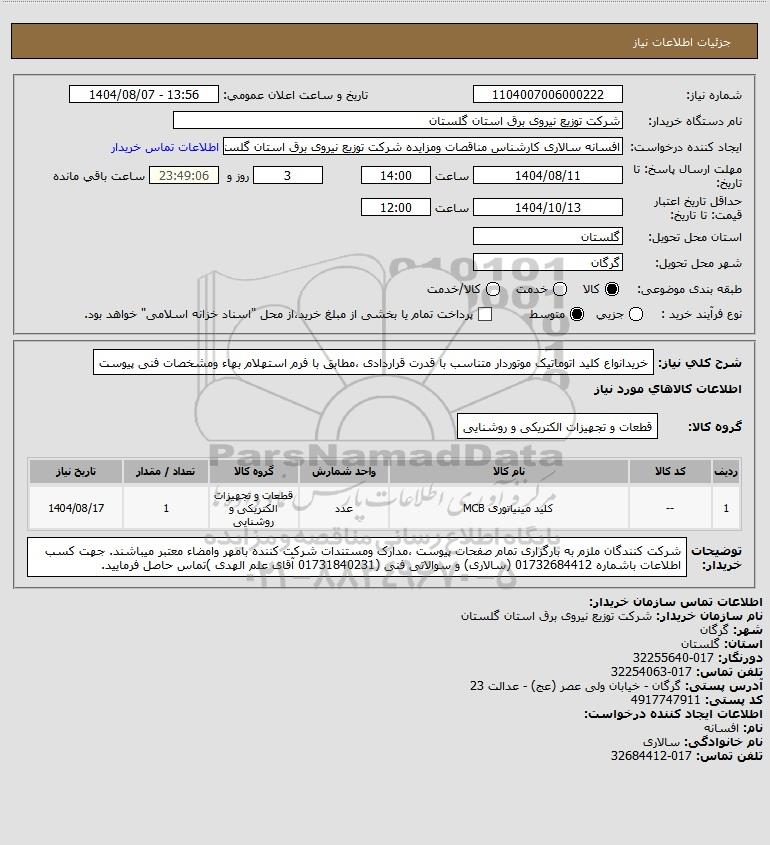 نام دستگاه خریدار:شرکت توزیع نیروی برق استان گلستان