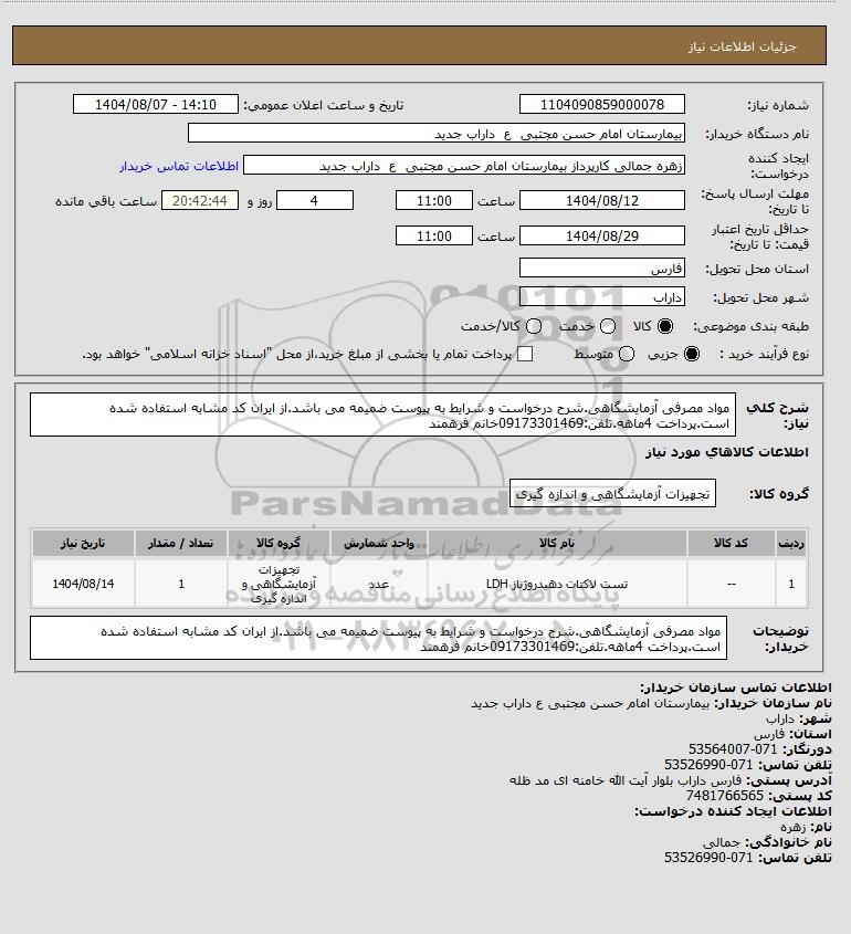 نام دستگاه خریدار:بیمارستان امام حسن مجتبی ع داراب جدید