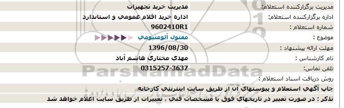 اداره برگزارکننده استعلام: اداره خرید اقلام عمومی و استاندارد