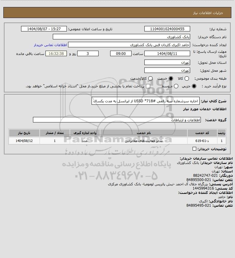 شرح کلی نیاز: اجاره سرشماره سه رقمی #718* USSD از ایرانسل به مدت یکسال