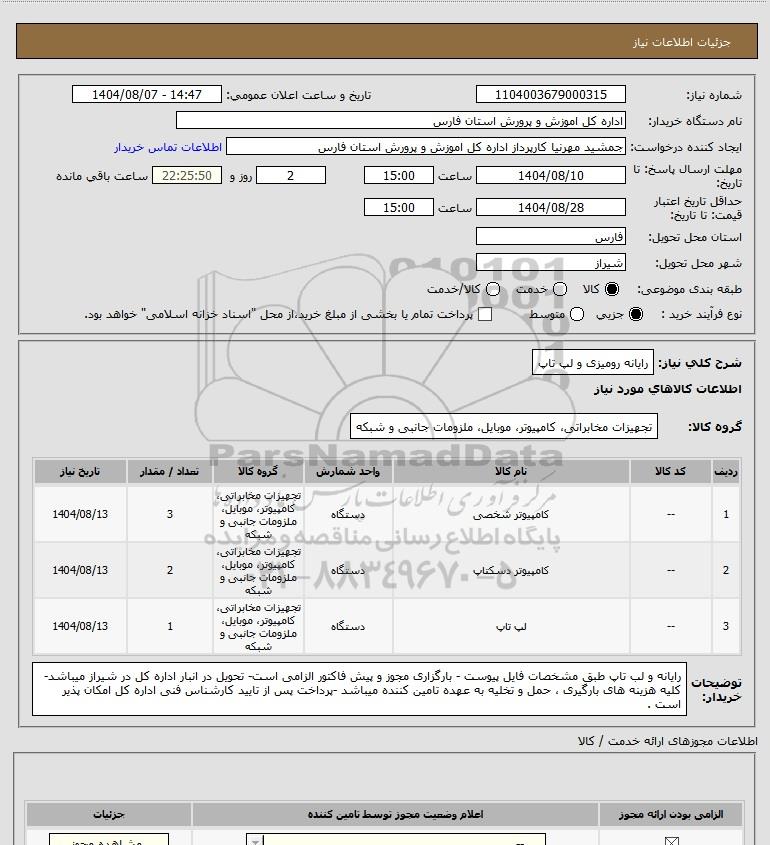 نام سازمان خریدار: اداره کل اموزش و پرورش استان فارس