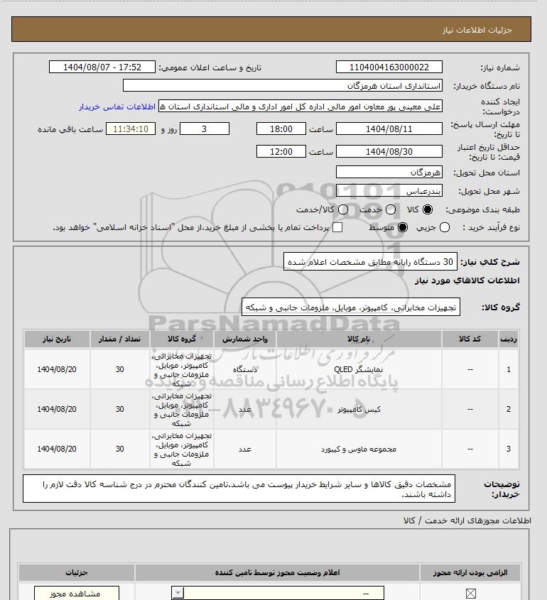 شرح کلی نیاز: 30 دستگاه رایانه مطابق مشخصات اعلام شده