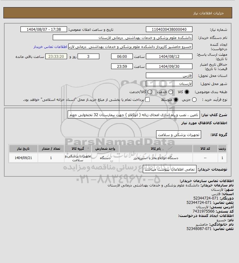 1 -- دستگاه اتوکلاو بخار یا استریلایزر دستگاه تجهیزات پزشکی و سلامت 1 1404/09/21