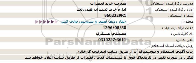 استعلام تعمیر و سرویس پولی کش , استعلام, استعلام تعمیر و سرویس پولی کش
