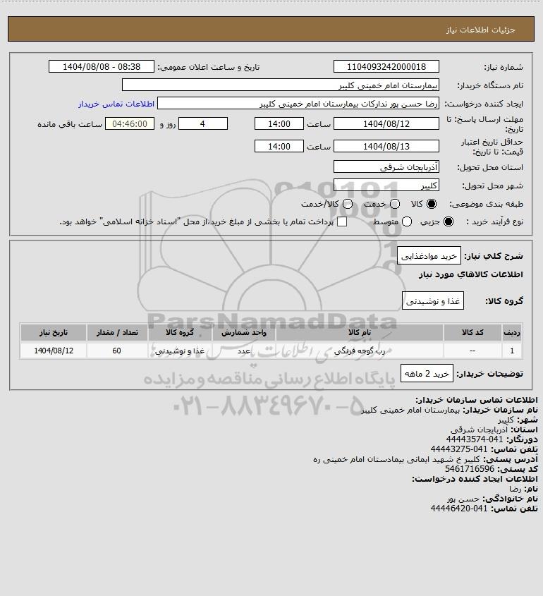 نام دستگاه خریدار:بیمارستان امام خمینی کلیبر