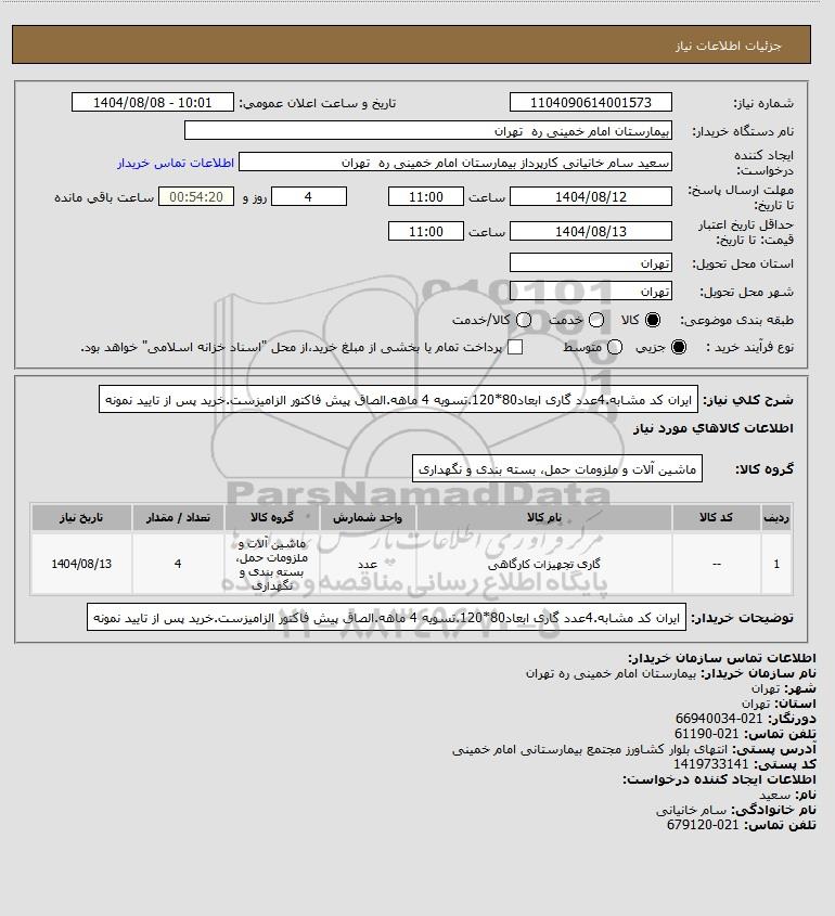 شرح کلی نیاز: ایران کد مشابه.4عدد گاری ابعاد80*120.تسویه 4 ماهه.الصاق پیش فاکتور الزامیزست.خرید پس از تایید نمونه