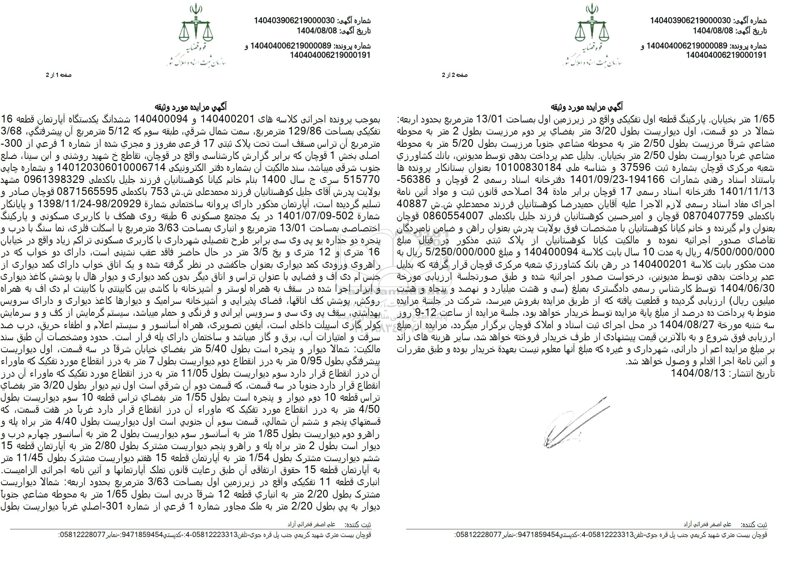 مزایده ششدانگ یکدستگاه آپارتمان قطعه 16 تفکیکی بمساحت 129.86 متر مربع , مزایده ششدانگ یکدستگاه آپارتمان قطعه 16 تفکیکی بمساحت 129.86 متر مربع