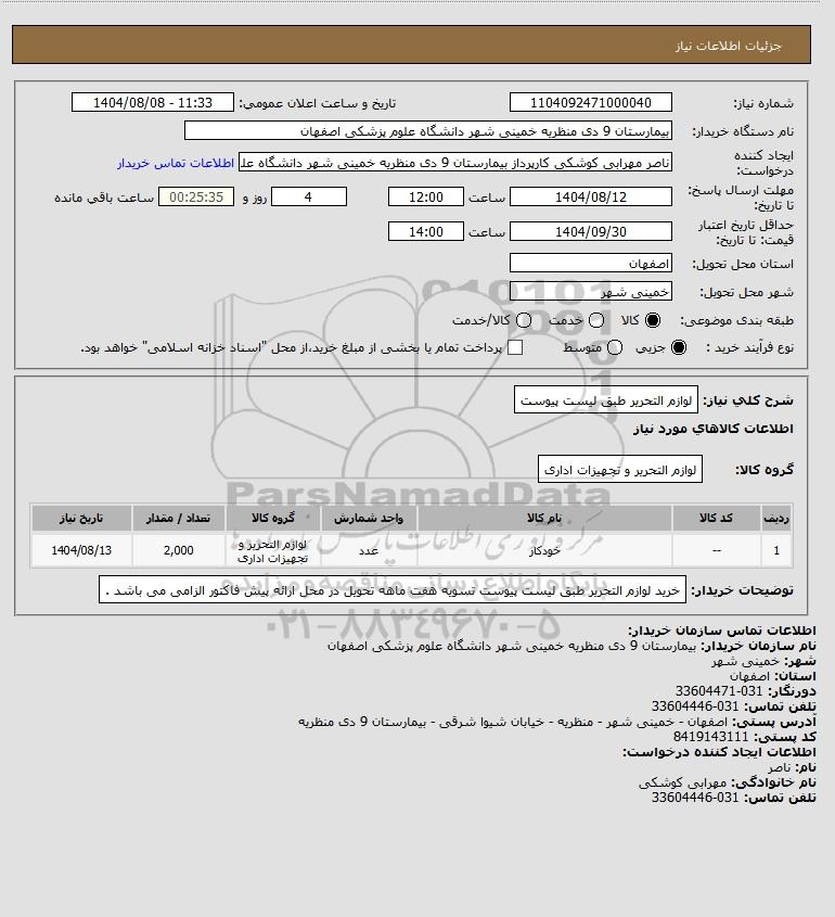 شرح کلی نیاز: لوازم التحریر طبق لیست پیوست