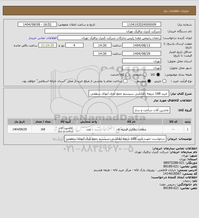 توضیحات خریدار:درخواست جهت خرید 168 دریچه زهکشی سیستم جمع آوری آبهای سطحی