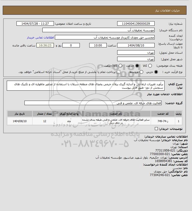 نام دستگاه خریدار:موسسه تحقیقات آب