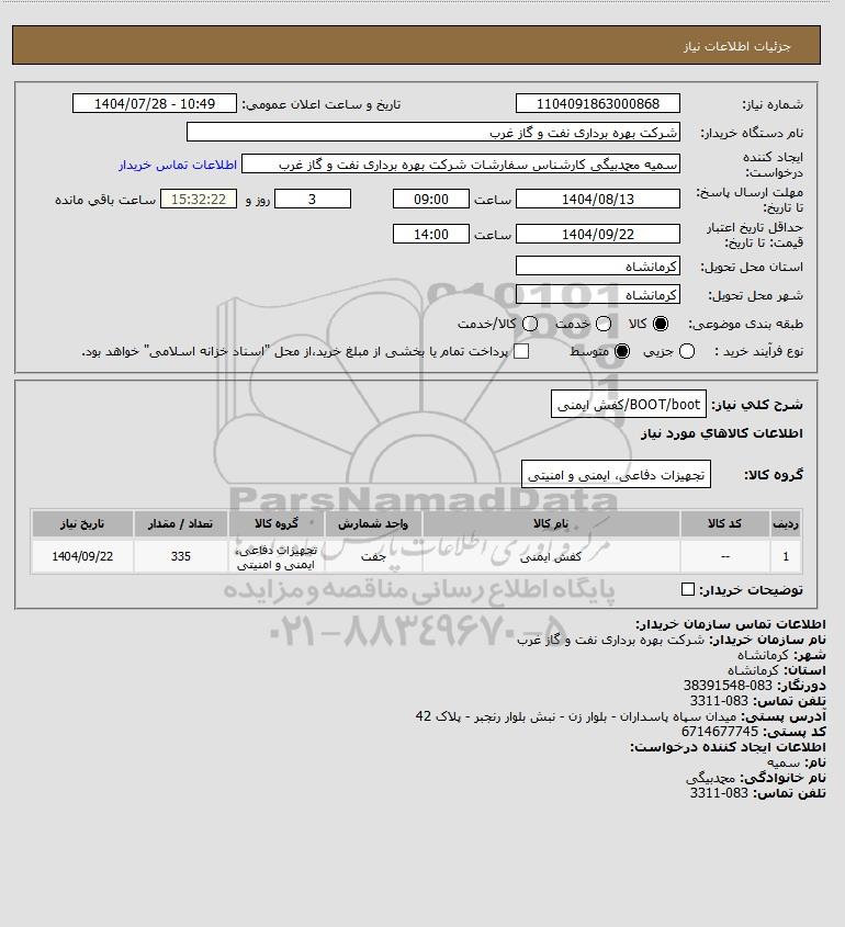 شرح کلی نیاز: BOOT/boot/کفش ایمنی