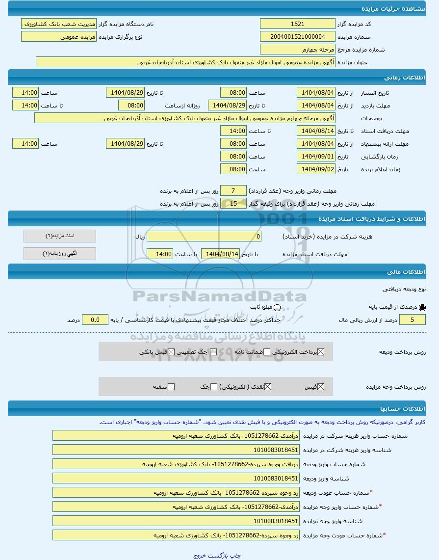 | شماره حساب عودت وجه مزایده | 1010083018451 |