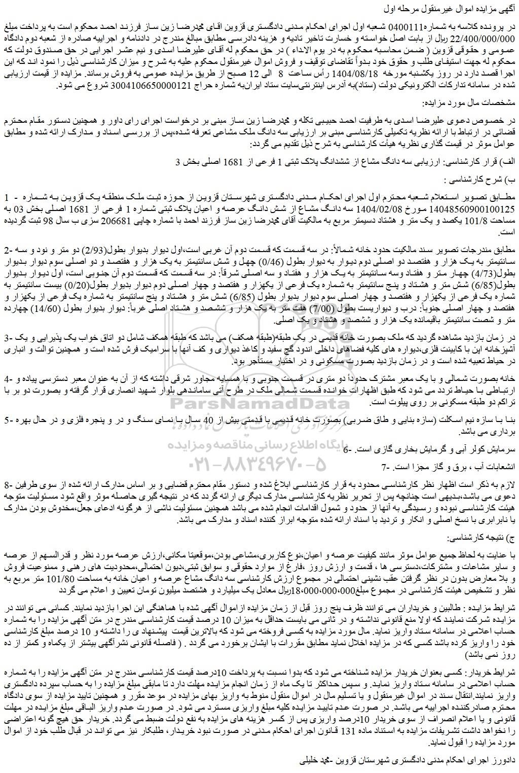 آگهی مزایده اموال غیرمنقول مرحله اول