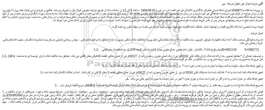 آگهی مزایده اموال غیر منقول مرحله  سوم