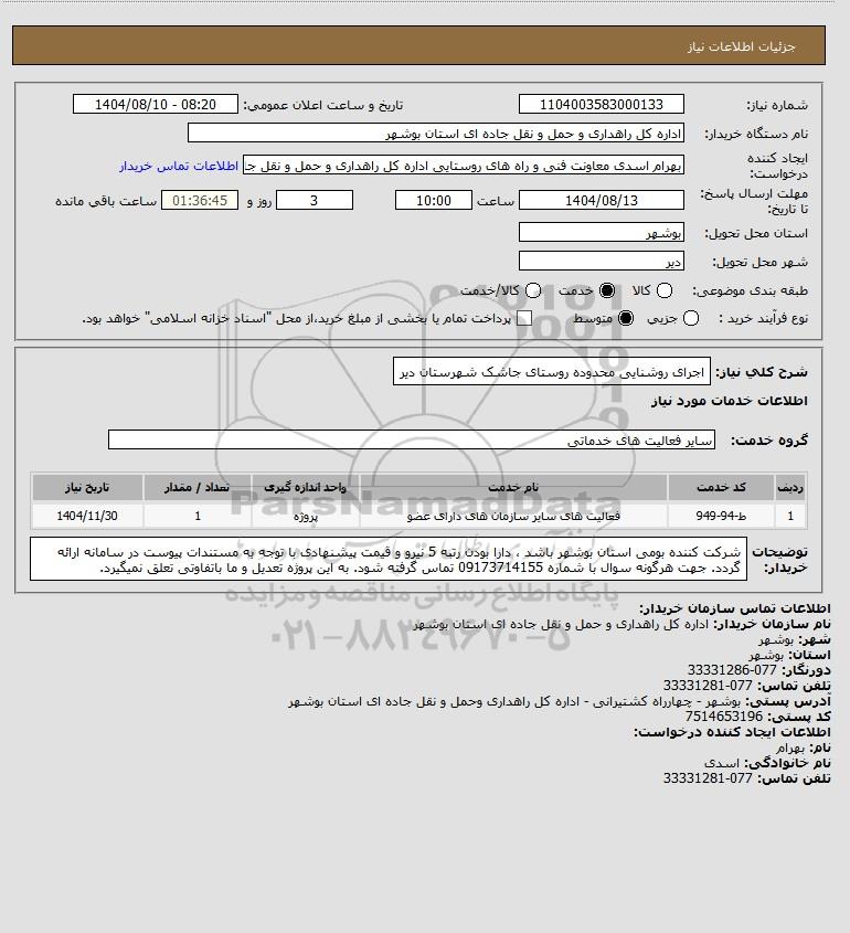 نام دستگاه خریدار:اداره کل راهداری و حمل و نقل جاده ای استان بوشهر