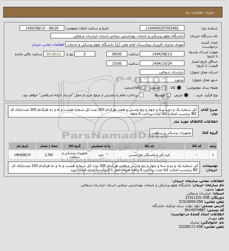 نام دستگاه خریدار:دانشگاه علوم پزشکی و خدمات بهداشتی درمانی استان خراسان شمالی