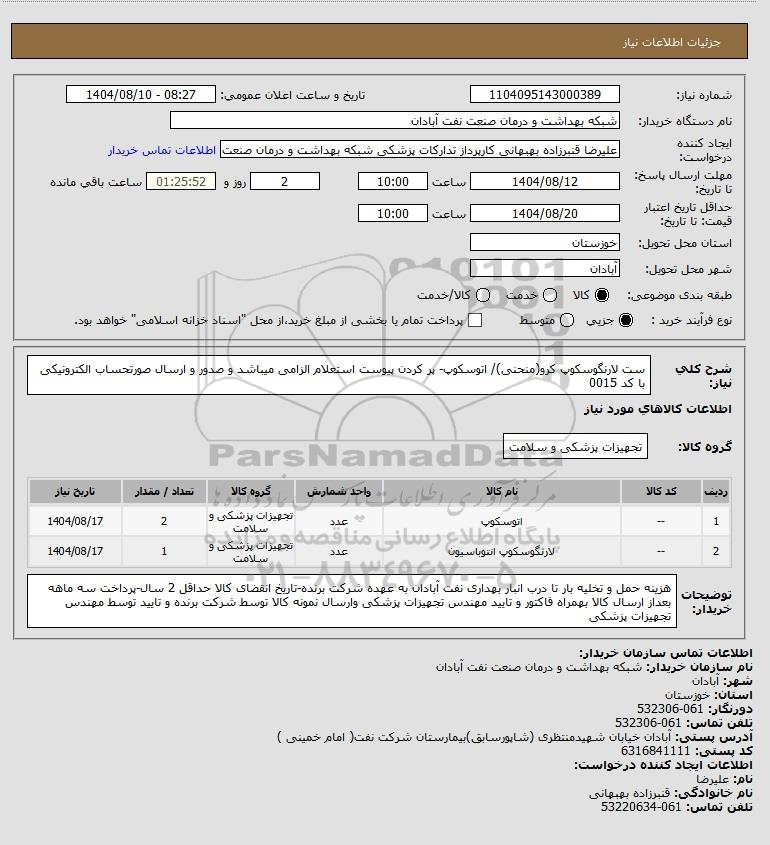 نام دستگاه خریدار:شبکه بهداشت و درمان صنعت نفت آبادان