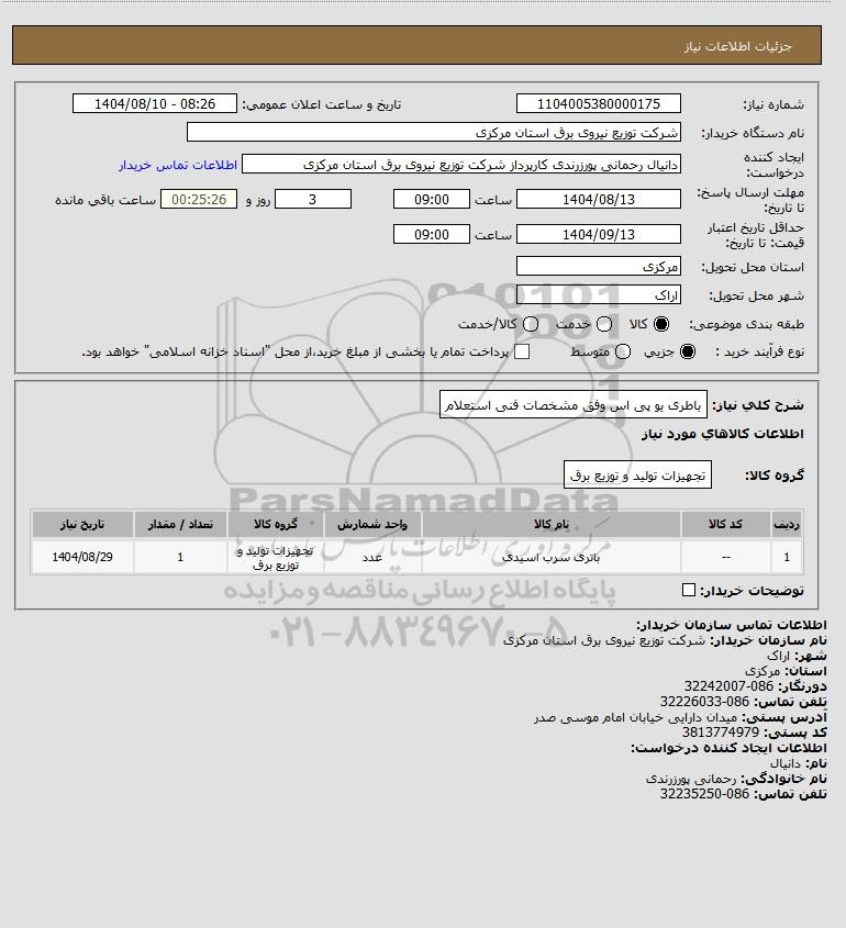 استعلام باطری یو پی اس وفق مشخصات فنی استعلام, استعلام باطری یو پی اس وفق مشخصات فنی استعلام