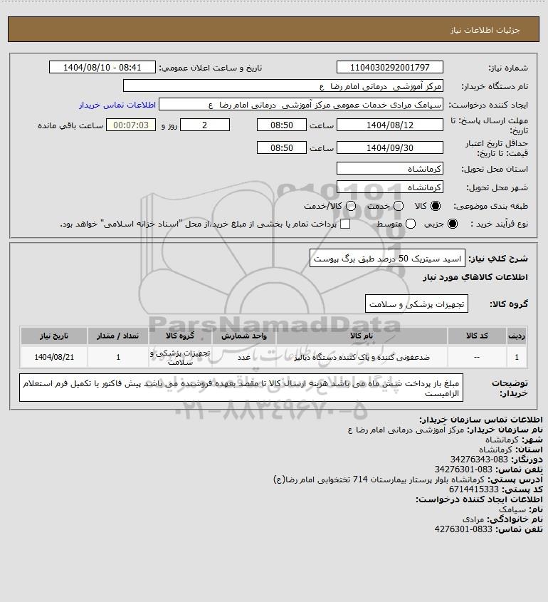 شرح کلی نیاز: اسید سیتریک 50 درصد طبق برگ پیوست
