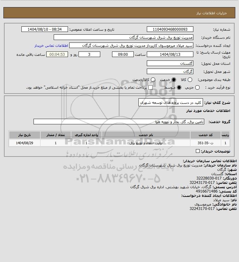 نام سازمان خریدار: مدیریت توزیع برق شرق شهرستان گرگان