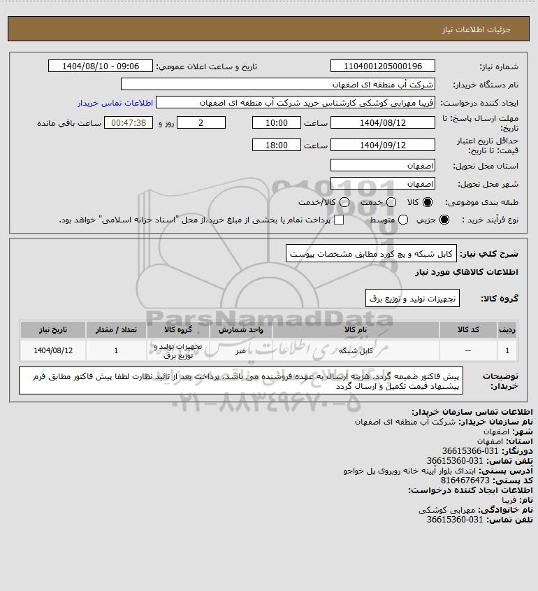 شرح کلی نیاز: کابل شبکه و پچ کورد مطابق مشخصات پیوست