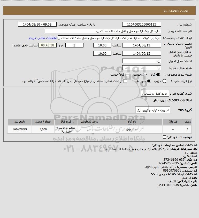 شرح کلی نیاز: خرید کابل روشنایی