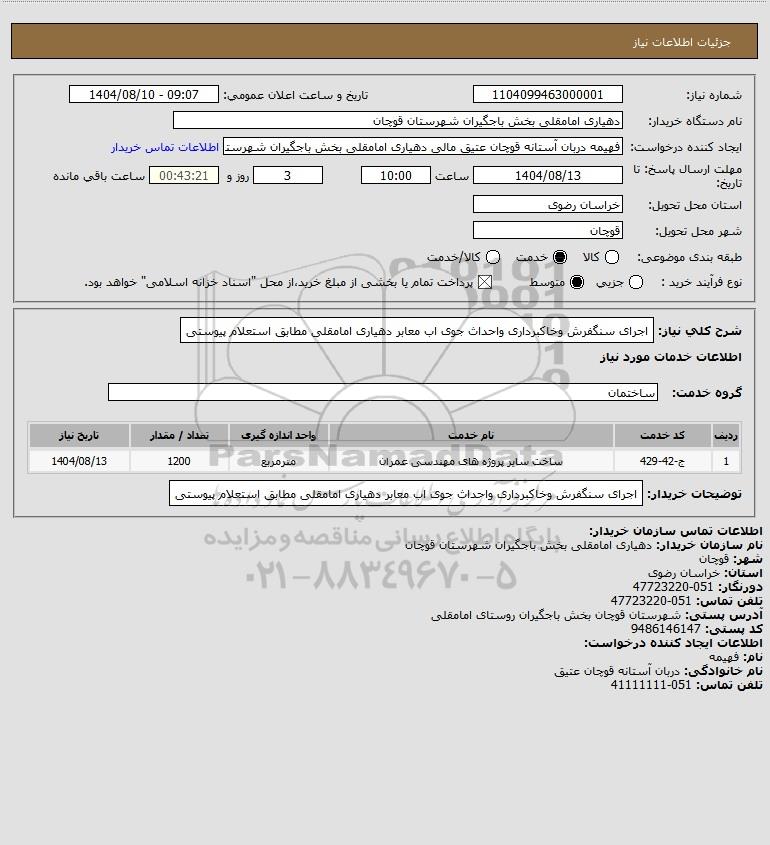 نام دستگاه خریدار:دهیاری امامقلی بخش باجگیران شهرستان قوچان