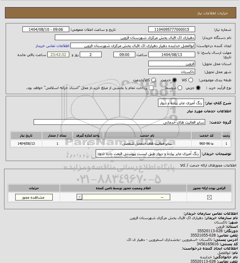 توضیحات خریدار:رنگ آمیزی عابر پیاده و دیوار طبق لیست پیوستی قیمت داده شود