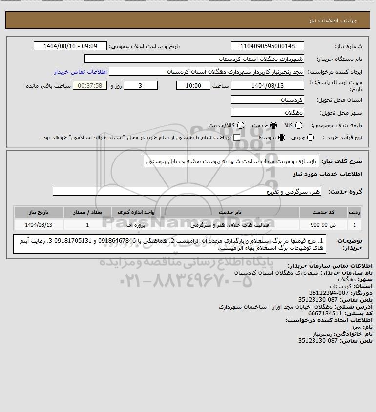 شرح کلی نیاز: بازسازی و مرمت میدان ساعت شهر به پیوست نقشه و دتایل پیوستی