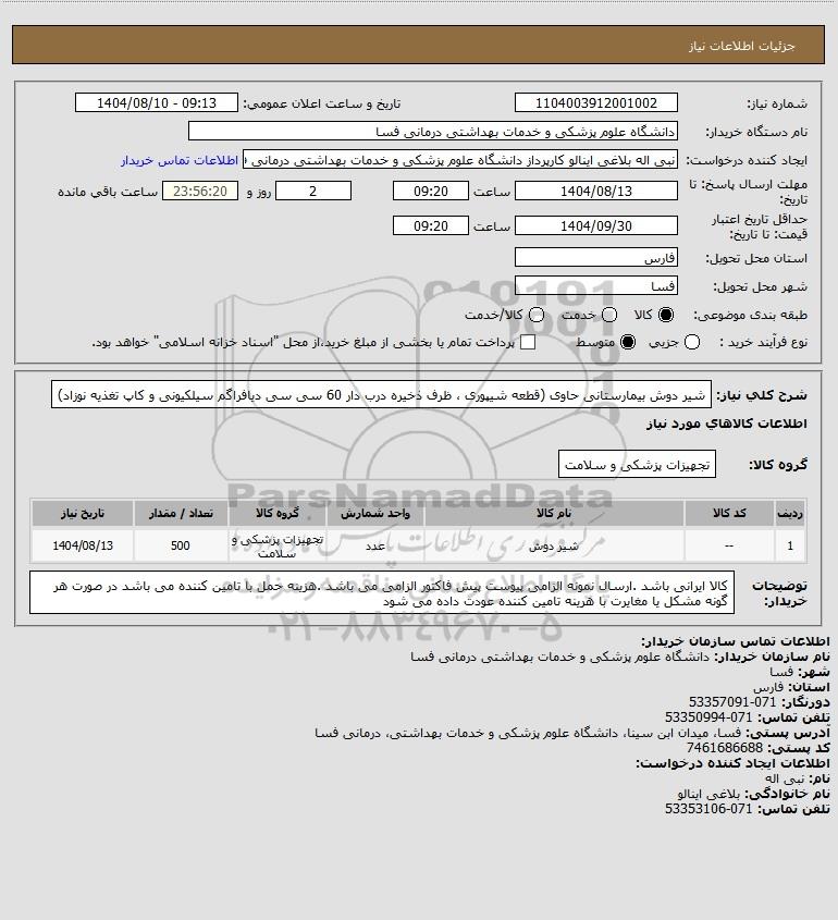| 1 | -- | شیر دوش | عدد | تجهیزات پزشکی و سلامت | 500 | 1404/08/13 |