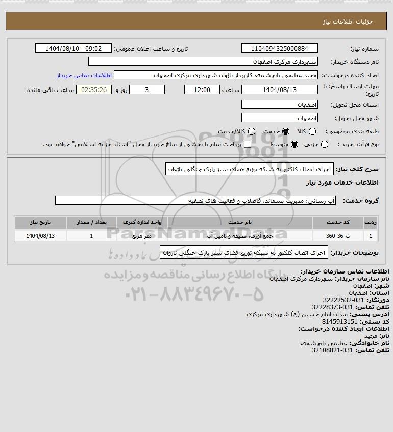 شرح کلی نیاز: اجرای اتصال کلکتور به شبکه توزیع فضای سبز پارک جنگلی ناژوان