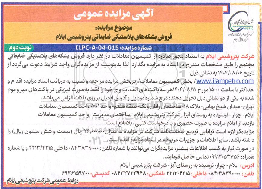 شماره مزایده: ILPC-A-04-015 - نوبت دوم