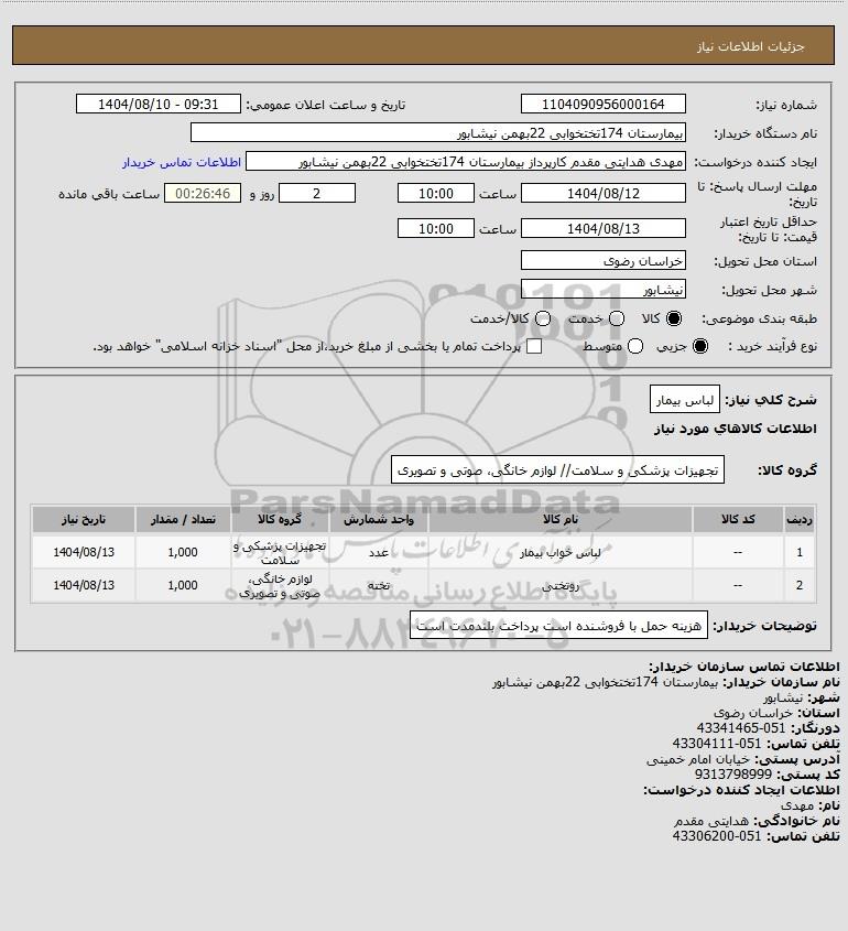نام دستگاه خریدار:بیمارستان 174تختخوابی 22بهمن نیشابور